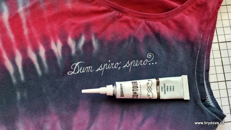 Rozhodla jsem se napsat bílou perlovou konturou latinské citáty.