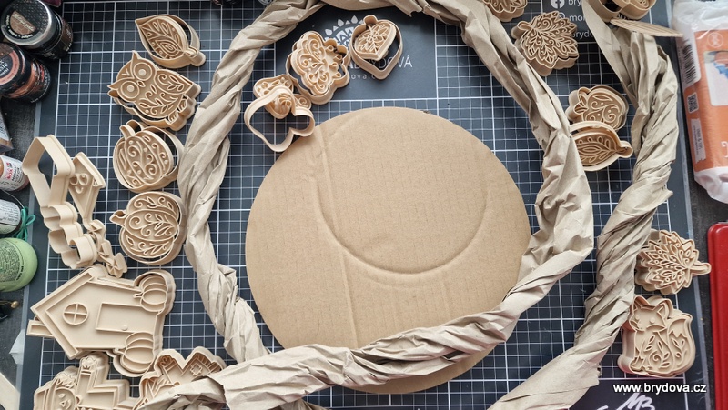 Základ byl kartonový – kolo a papír, kterým byl vycpán balík.