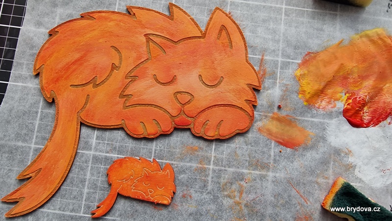Maluji další zvířata na dveře – tentokrát oranžové kocourky.
