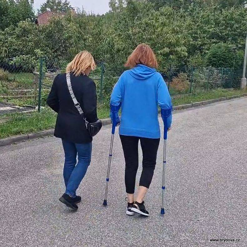 Monča po operaci – výměně kyčle – krásně chodí… a tak jsme se šly i projít.