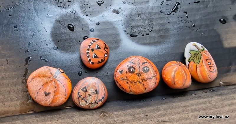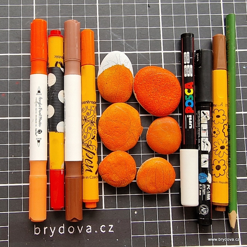 Protože mi zbyla barva, když jsem malovala zrzavého kocoura na dveře a vypínač, tak jsem si namalovala i pár kamínků.