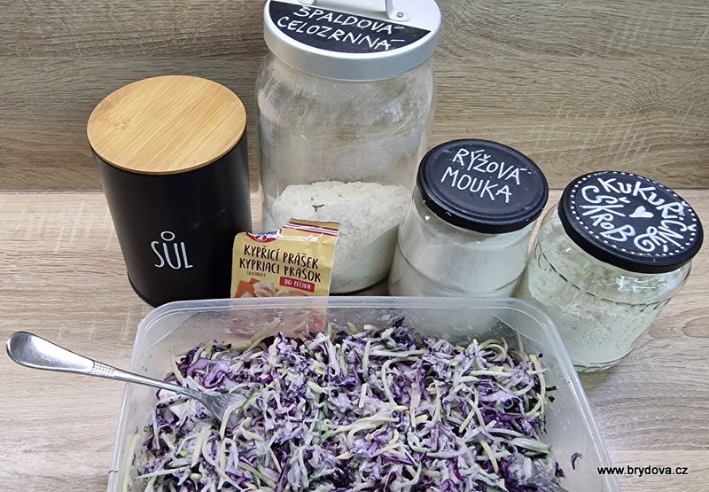 Ale mouka hladká, rýžová a kukuřičný škrob v poměru 3:2:1 plus kypřící prášek a sůl.