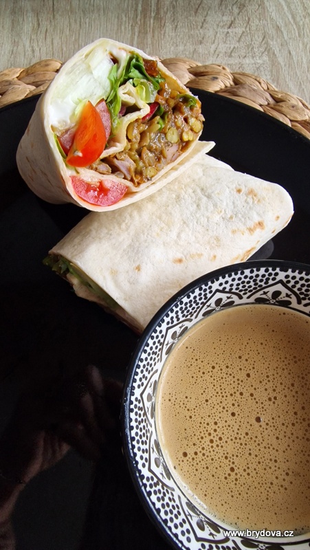 Druhý den míchám zbytek namáčecí omáčky s arašídovým máslem a zkouším do toho namáčet tortilly. A je to dobrý.