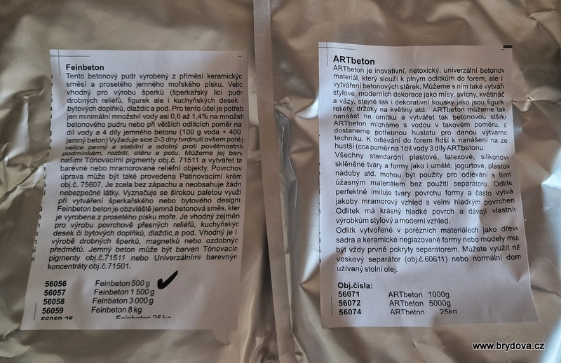 Z betonu jsem už tvořila před pár lety, ale byl to obyčejný beton, který jsem jen lehce prosála a dělala jsem větší objekty a tentokrát chci vyzkoušet speciální betonové směsi – FEINBETON a ARTbeton z www.tvorivyamos.cz – eshopu, ve které máte ode mne slevu 10% s kódem MONIKA10