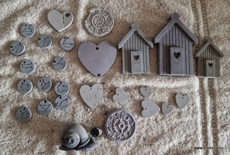 Na dokončení pro tento článek jsem si vybrala tyto domečky z ARTbetonu a šperková srdíčka z FEINBETONu.