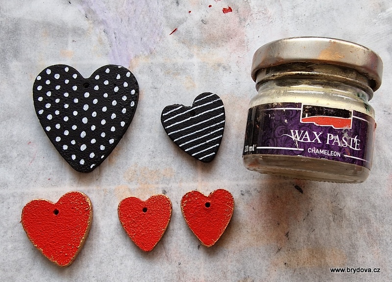 Na dozdobení červených srdíček jsem použila i zlatou voskovou pastu.