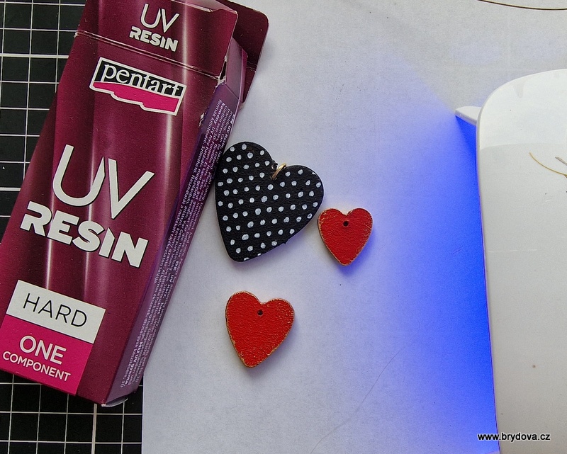 Na červená srdíčka jsem nanesla ještě UV pryskyřici.