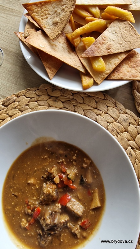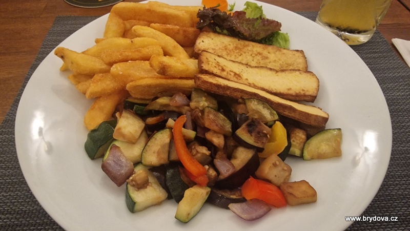 Oběd v restauraci ve Žďáru překvapil – připravili mi uzené tofu s grilovanou zeleninou a velkými hranolky.