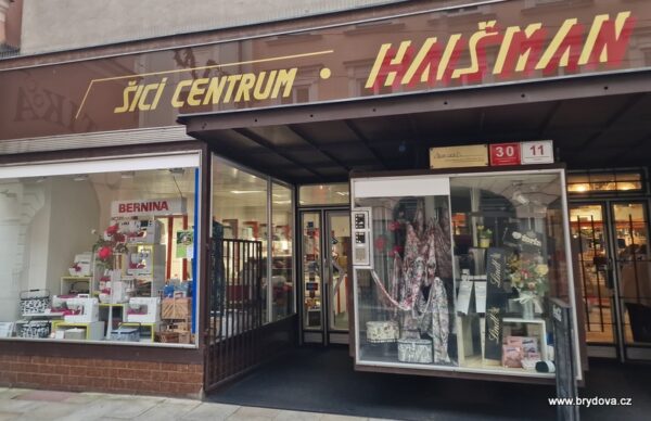 Protože teď nemám doma šicí stroje, vyrážím si to ušít přímo do prodejny.