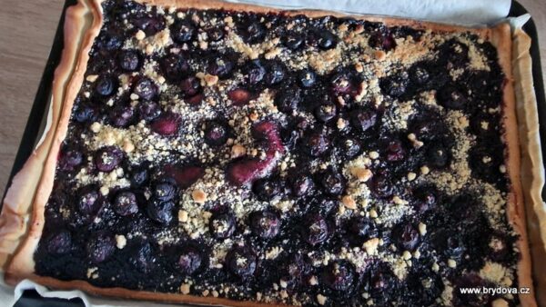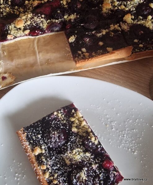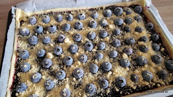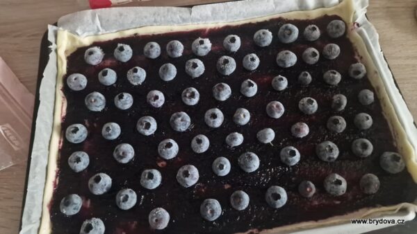 Jako první jsem připravila křehký koláč – těsto bylo koupené – s domácí borůvkovou marmeládou a borůvkami.